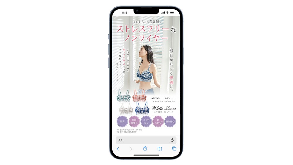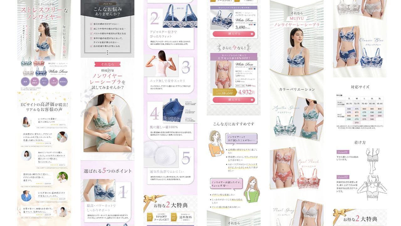 オンラインでのインナー購入では「サイズ感」や「素材」が大きな不安要素となるため、その不安を解消できるよう配慮しました。